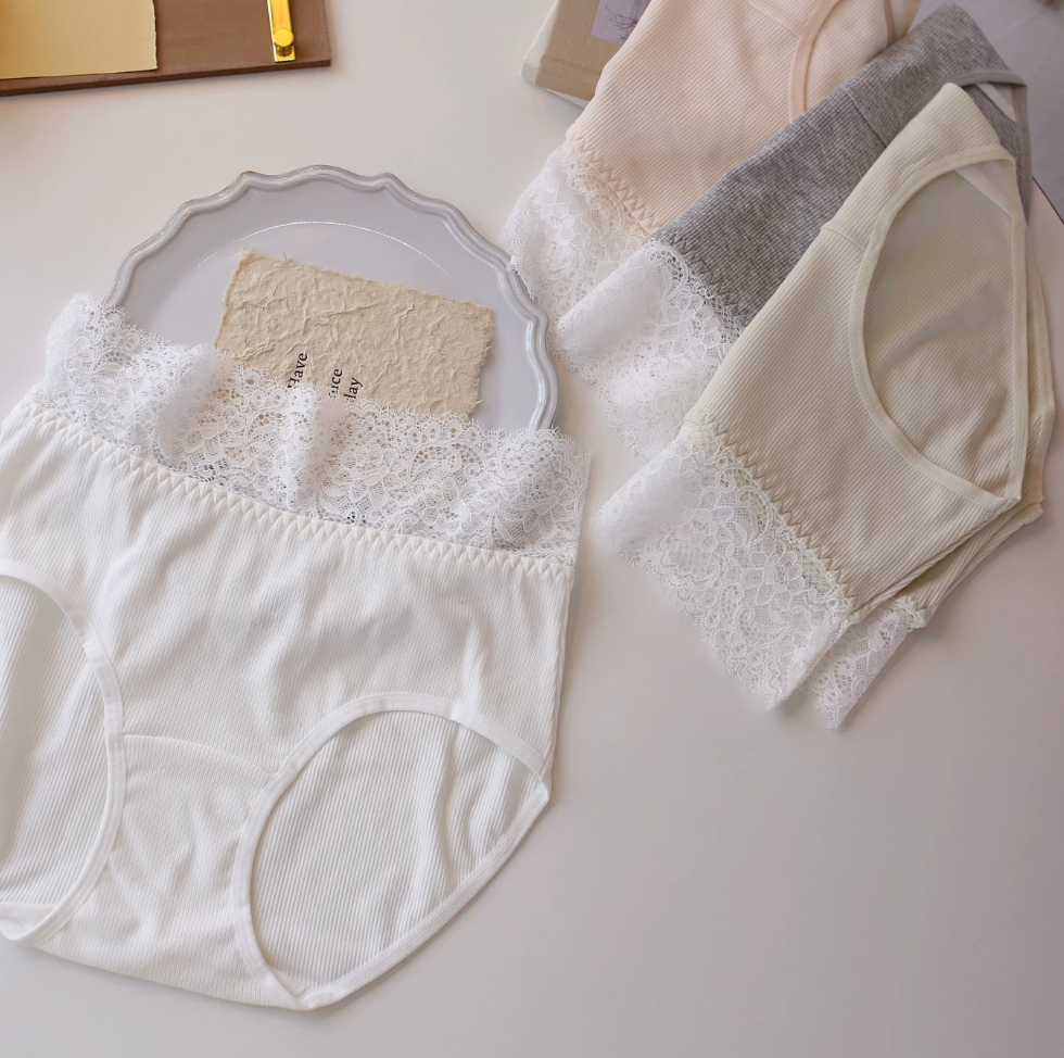 速干纯棉透气内裤简约益生菌抑菌裆三角裤女蕾丝无痕边甜美可爱
