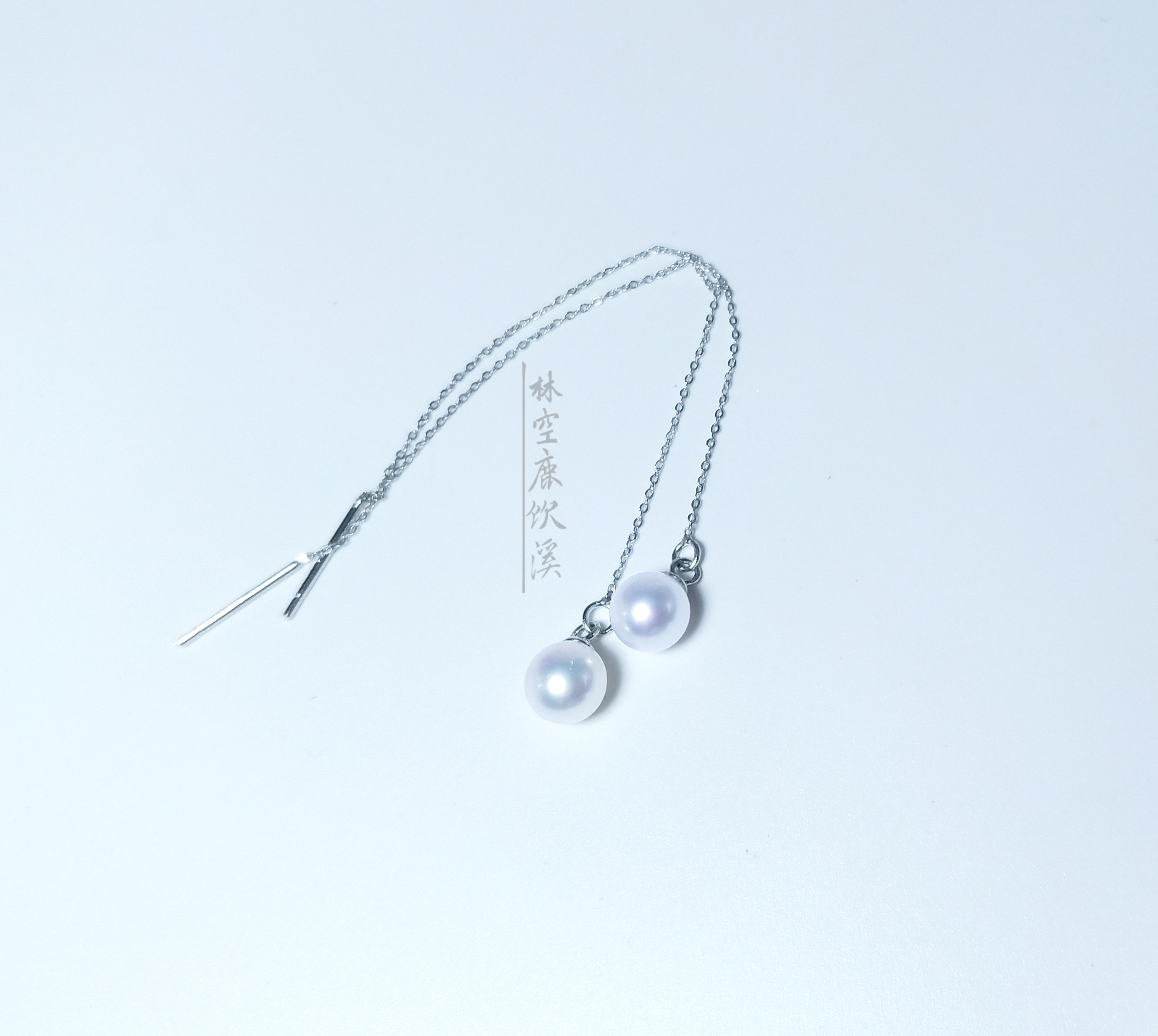 主团4:【林空鹿饮溪】天然淡水珍珠耳线 正圆无暇 镜面强光 925银